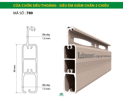 Cửa cuốn Nan Nhôm BooDoor 789 êm nhẹ giảm chấn 2 chiều khe thoáng đáp ứng hoàn toàn mọi tính năng mà các dòng cửa cao cấp khác có được mà lại có mức giá rất phải chăng. Thiết kế dạng hình hộp vuông vắn dày ~1.4mm, kèm hệ nan cửa cách âm, giảm các chấn động và ma sát hiệu quả. BooDoor 789 là mẫu cửa rất phù hợp để sử dụng cho kiến trúc nhà ở và các công trình cửa hiện đại nhất.